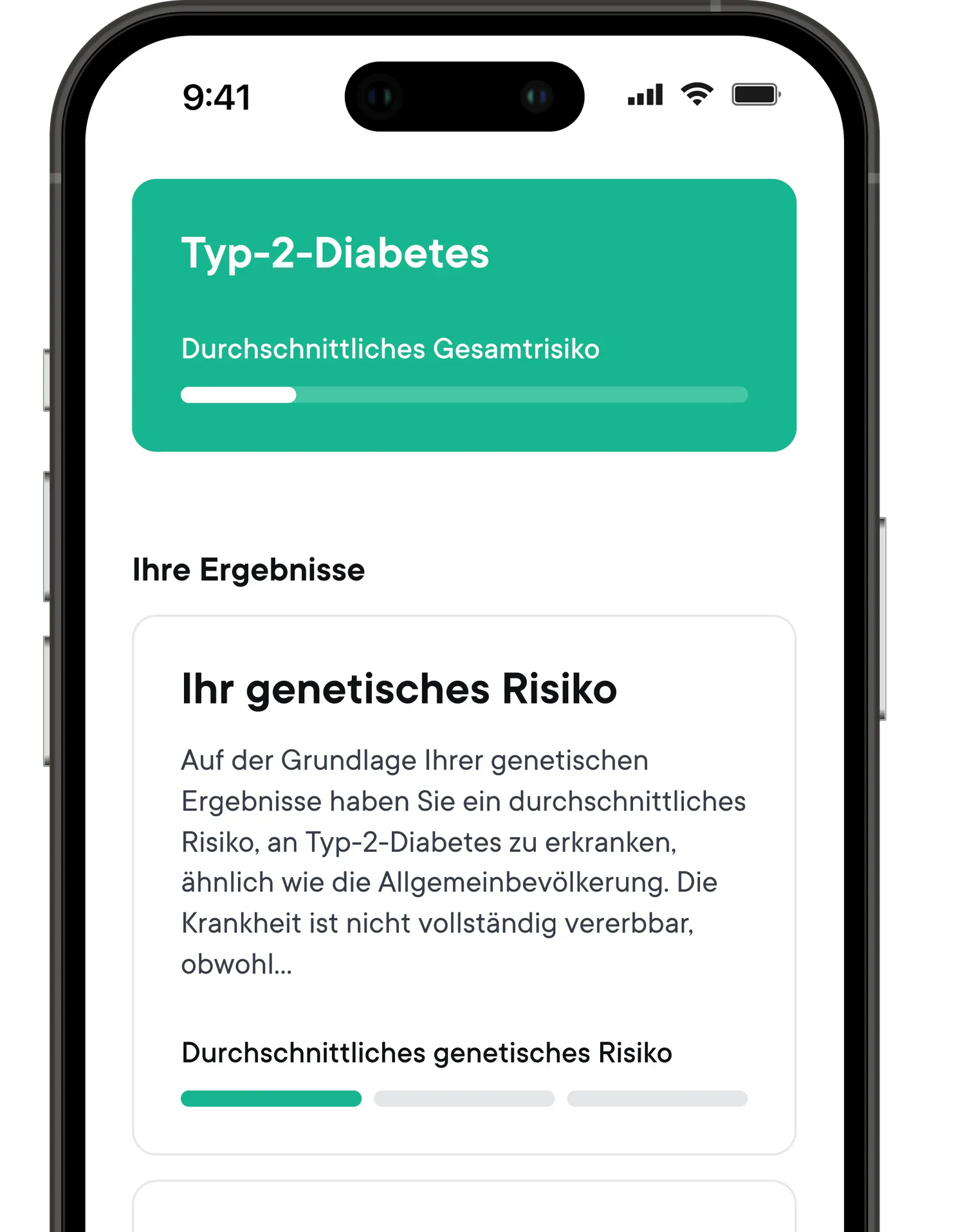 Sie erhalten personalisierte Empfehlungen, die auf Ihren Körper und Ihre Bedürfnisse angepasst sind und Ihnen helfen, länger und besser zu leben. Wir geben Empfehlungen für eine gesunde Lebensweise und Krankheitsvorbeugung auf der Grundlage messbarer und statistisch fundierter Daten. Sie werden durch die Kombination von DNA-Testergebnissen mit Informationen über Ihre Krankengeschichte und Ihren derzeitigen Lebensstil erstellt und basieren auf bewährten wissenschaftlichen Studien.