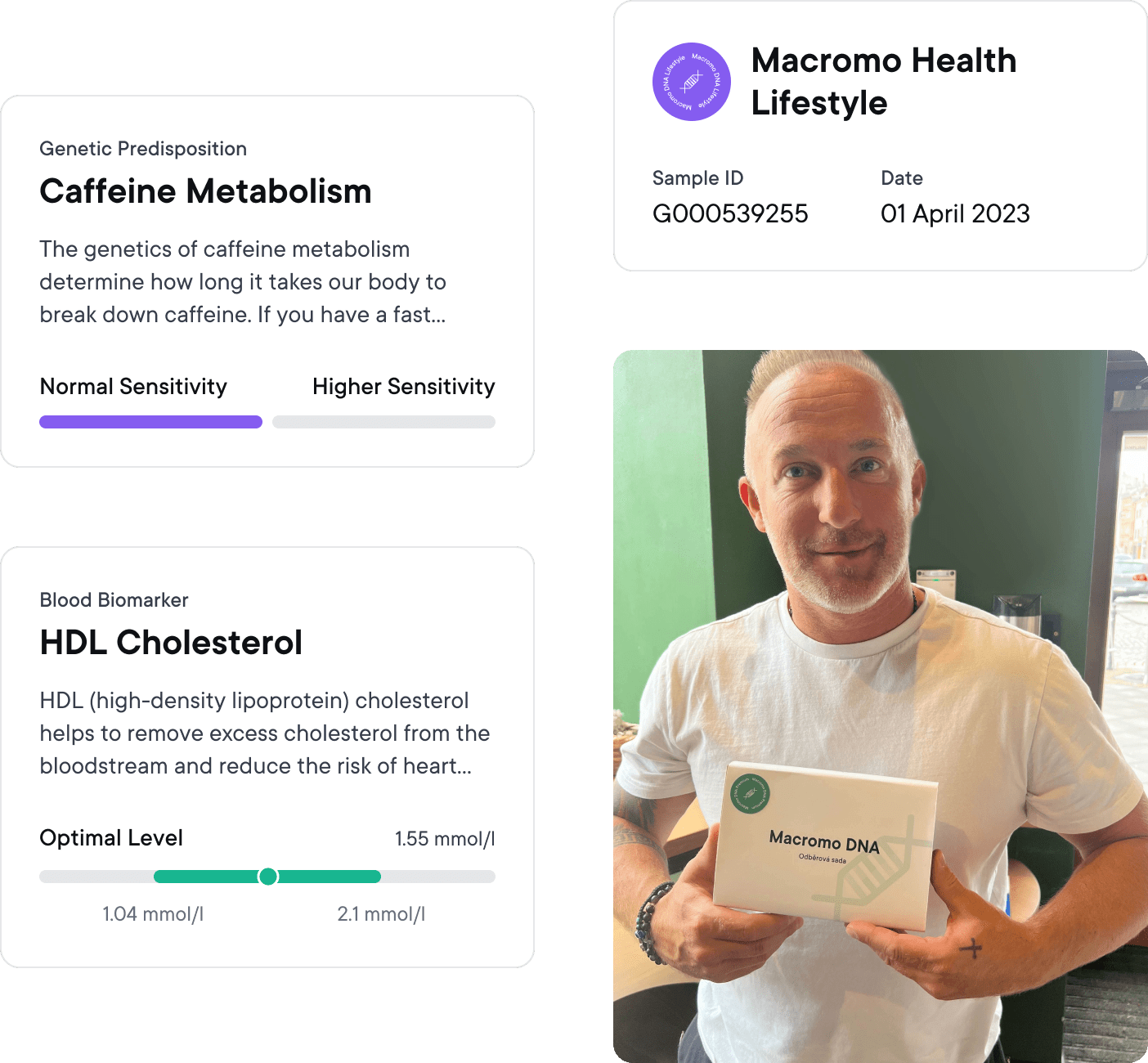 Macromo combines data from DNA, blood and lifestyle to help you make better health decisions. You can get health and lifestyle reports, combining your nutritional needs and deficiencies, fitness predispositions, and wellness insights with your disease predispositions and response to medications.