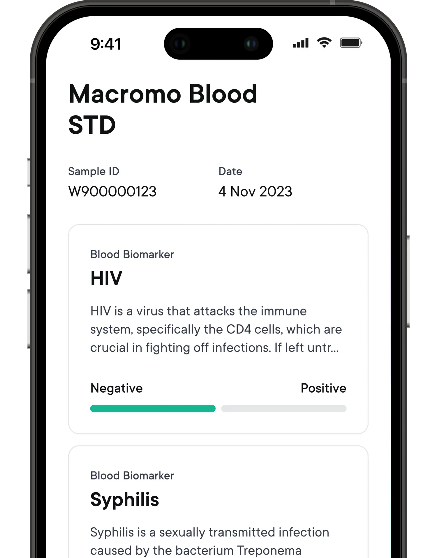 You will receive your blood test results within 5 working days via the Macromo app. The app will display your results clearly and easily, including recommendations for improving your health.