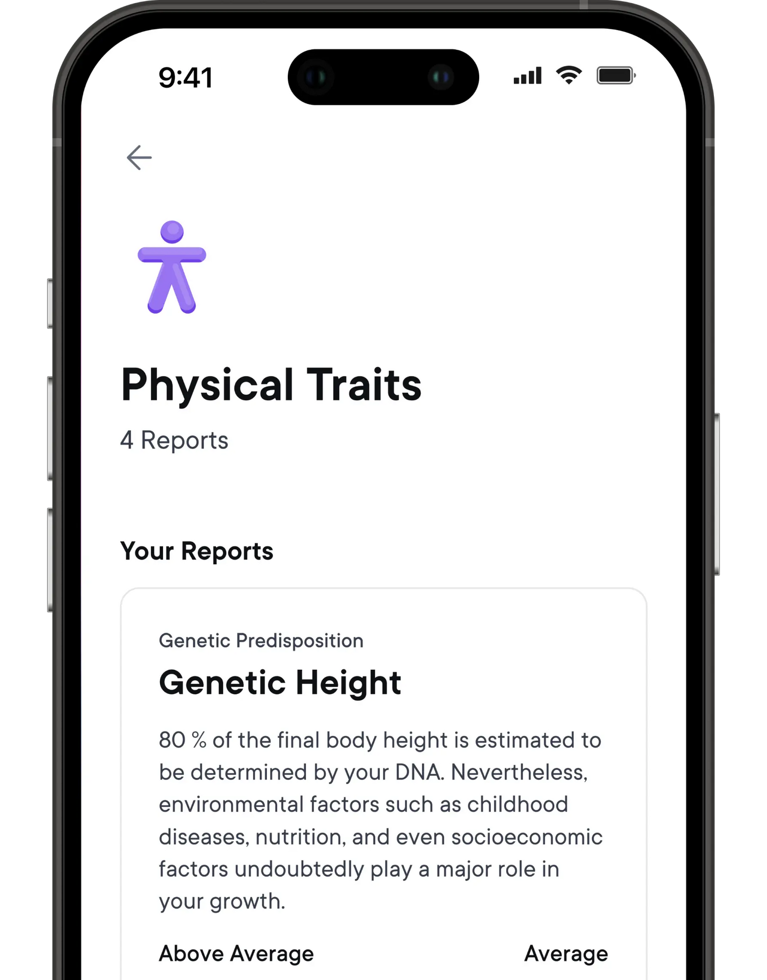 You'll get personalized recommendations tailored to your body and needs to help you live a longer, better life. We make recommendations for healthy living and disease prevention based on measurable and statistically sound data. They are created by combining DNA test results with information about your medical history and current lifestyle, and are based on proven scientific studies.