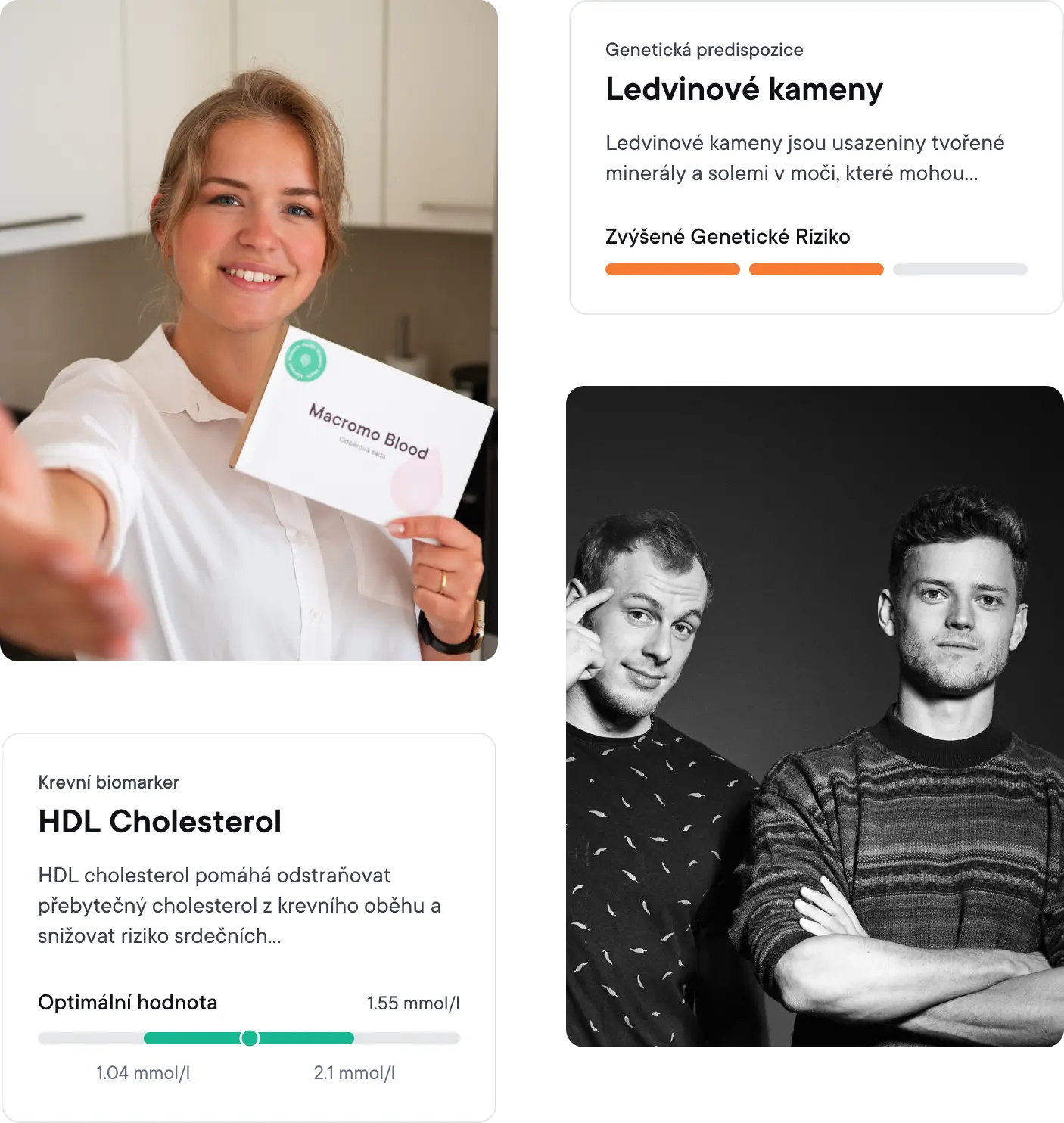 Macromo nabízí komplexní přístup k prevenci nemocí, který kombinuje vaše genetické dispozice k určitým onemocněním, krevní testy posuzující váš aktuální zdravotní stav, rodinnou anamnézu a údaje o životním stylu. Věříme, že ve znalostech je síla, a když máte kompletní přehled, můžete podniknout akční kroky k prevenci řady onemocnění prostřednictvím změny životního stylu a pravidelných kontrol.