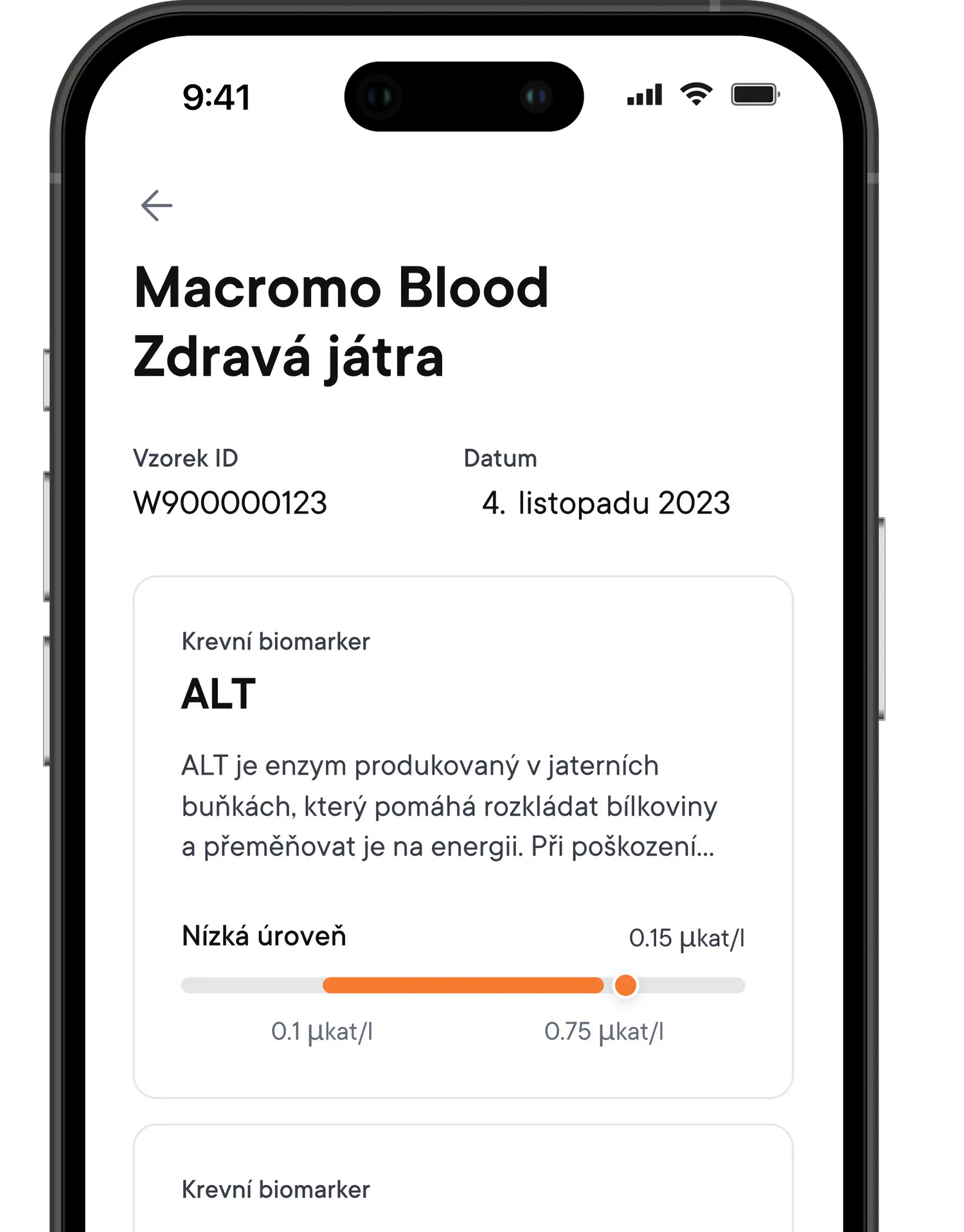Všechny výsledky získáte v mobilní aplikaci Macromo, která spojuje všechna vaše zdravotní data na jednom místě a poskytuje personalizovaná doporučení pro váš zdravější životní styl.