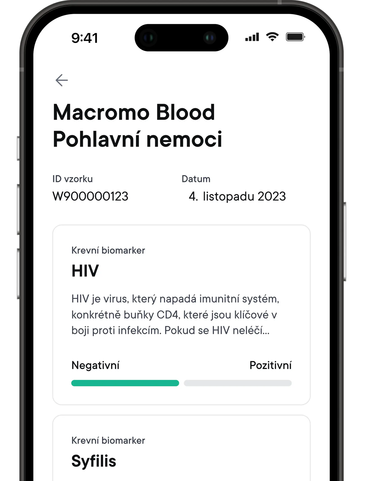 Všechny výsledky získáte v mobilní aplikaci Macromo, která propojuje všechny vaše zdravotní údaje na jednom místě a poskytuje personalizovaná doporučení pro váš zdravější životní styl.