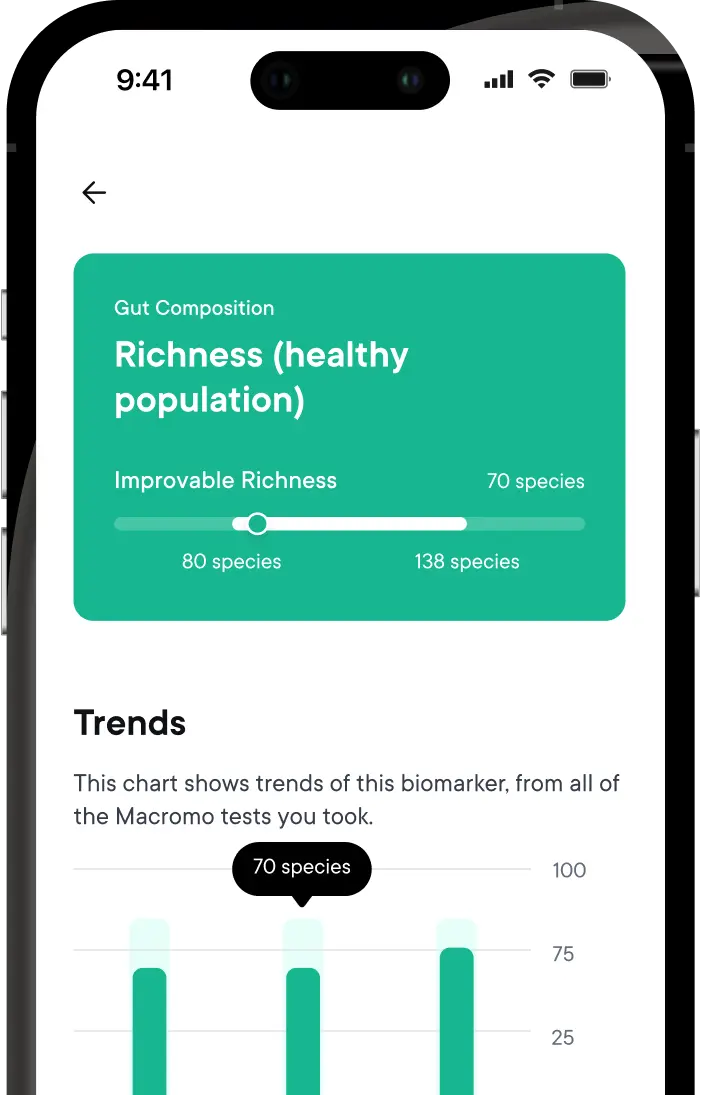 Využijte platformu Macromo pro dlouhodobé sledování svého střevního mikrobiomu, které vám umožní sledovat změny v průběhu času a lépe pochopit, jak vaše volby životního stylu ovlivňují zdraví vašeho trávicího traktu.